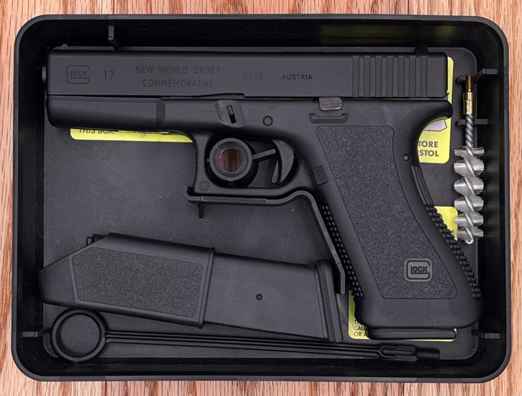 Last month I posted what I believe was the first commemorative edition Glock ever made–a Fraternal Order of Police engraved model available to the Metropolitan Police of D.C. As I covered there, the success of commemorative models makes for easy profits for gunmakers and Glock has become one of the best at it! Their second commemorative entry has really taken off in collector circles due to it’s wide appeal and limited run: A New World Order Commemorative, or more commonly called the “Desert Storm” Glock.