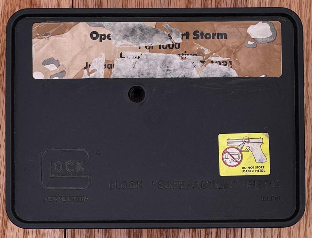 On the lid of the tupperware, a special sticker was placed that reads, “Operation Desert Storm/1 of 1000/Commemorative/January 16 – February 27, 1991.” Mine has clearly worn over the last 31 years so the sticker is almost unreadable–thankfully the gun was well maintained.